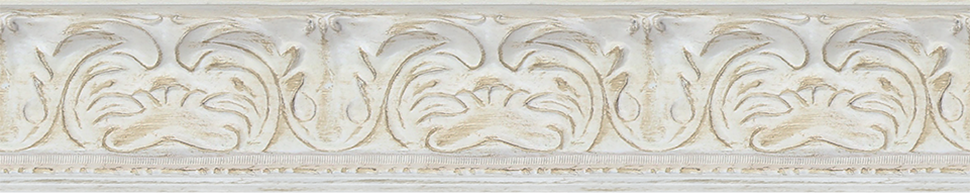 Die exclusiven und maßgefertigten Bilderrahmen der Serie E033 sind in einem schönen mattem Altweiß gehalten. Die weiße, durch Ornamente strukturierte Oberfläche ist zudem dunkler abgesetzt, wodurch das Muster gut sichtbar ist, ohne aufdringlich zu sein.