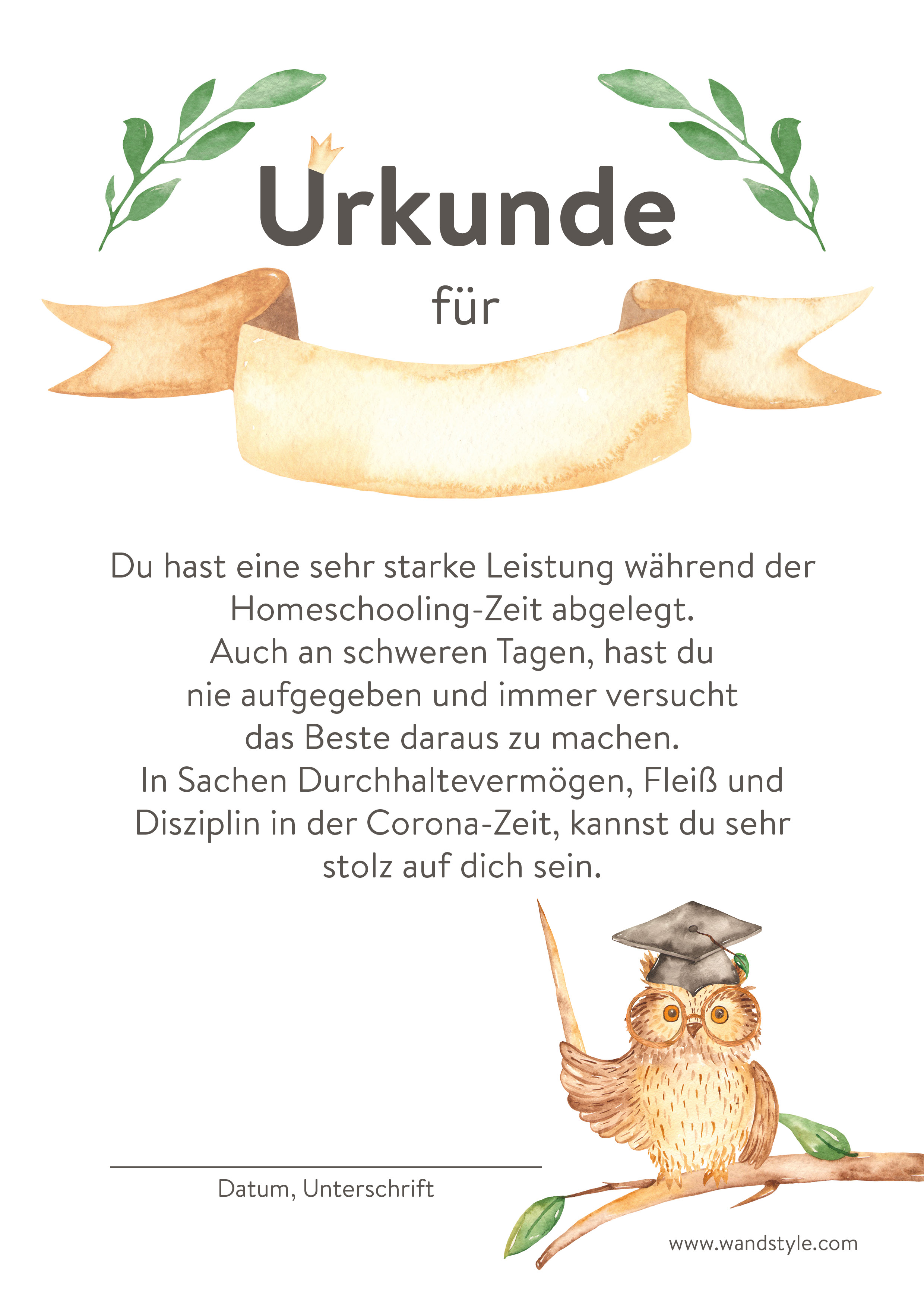 - Die Vorlage der Homeschooling-Urkunde kostenlos downloaden